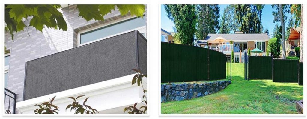 Privacy screens are widely used in porch decks, balconies, outdoors, courtyards, roofs, carports, warehouses, backyard terraces and gathering areas, swimming pools or any place where privacy is needed. It is also used to protect greenhouse plants and vegetables, wind-proof and shading nets, construction nets and automobile packaging covers.
