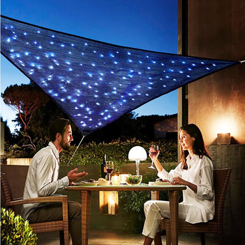 Romantic LED lights sun shade sail is also a good choice for family gatherings. You can imagine that under the beautiful colorful shade sails, the lights flicker, you accompany the music, bring your lover to open a glass of wine, and tell your beautiful love story under the flickering lights. I think it will be unforgettable.